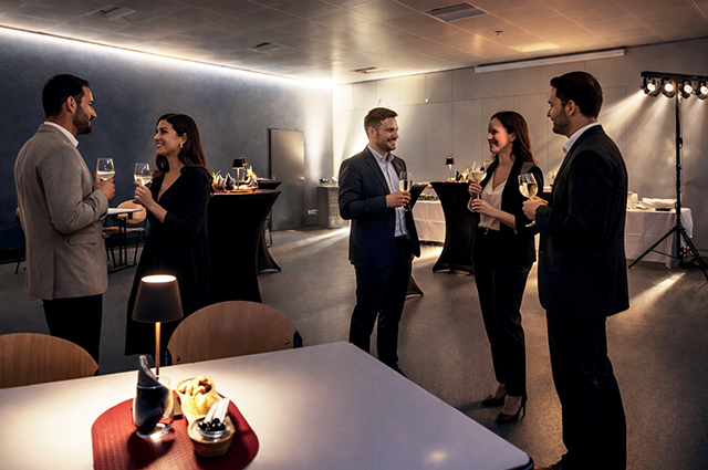 Sala attrezzata per conferenze, meeting, aperitivi o spazio espositivo.